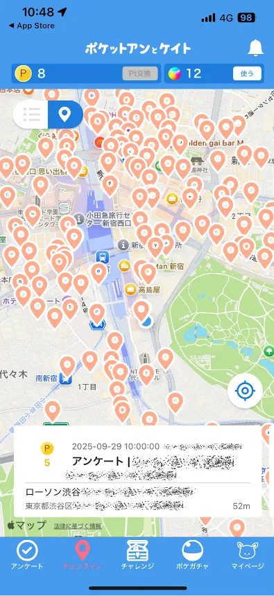 - 指定した調査範囲内に入った場合のみ、対象店舗へのチェックインを許可