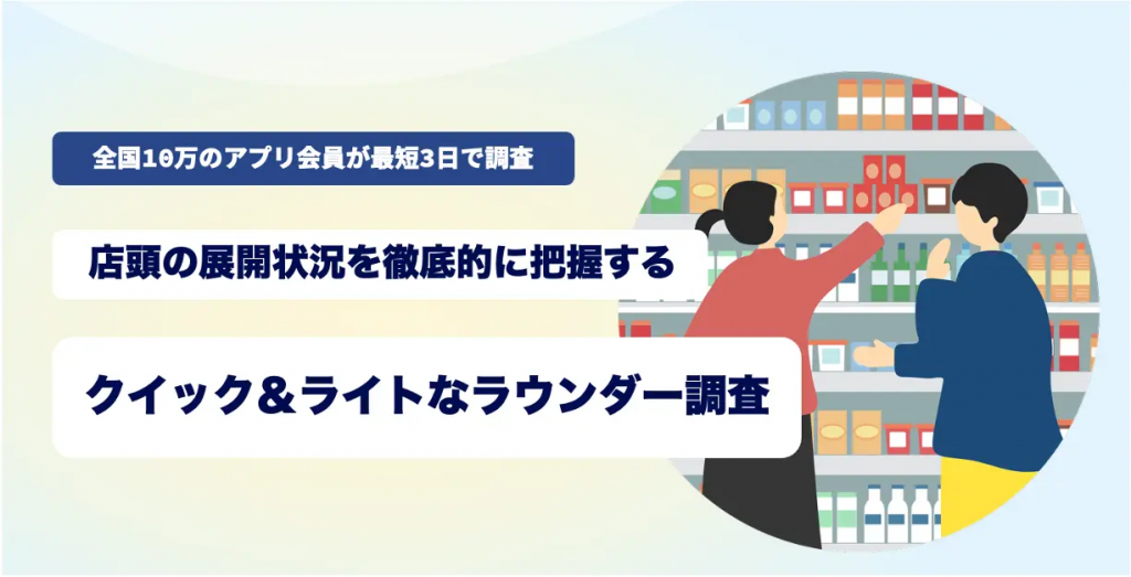 ラウンダー調査(店頭の棚割りの可視化)、ミステリーショッパーなどの店舗訪問型の調査に関するお問い合わせは、以下よりお願いいたします。